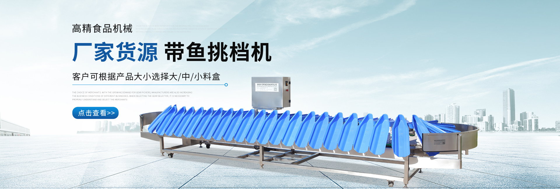 公司主要致力分選機的研發和設計,并獲得多項專利,有皮帶式稱重分選機、托盤式稱重分選機,廣泛應用于食品、水產、電子、中藥等各種需要精確分選的行業,并獲得了廣大客戶的好評。